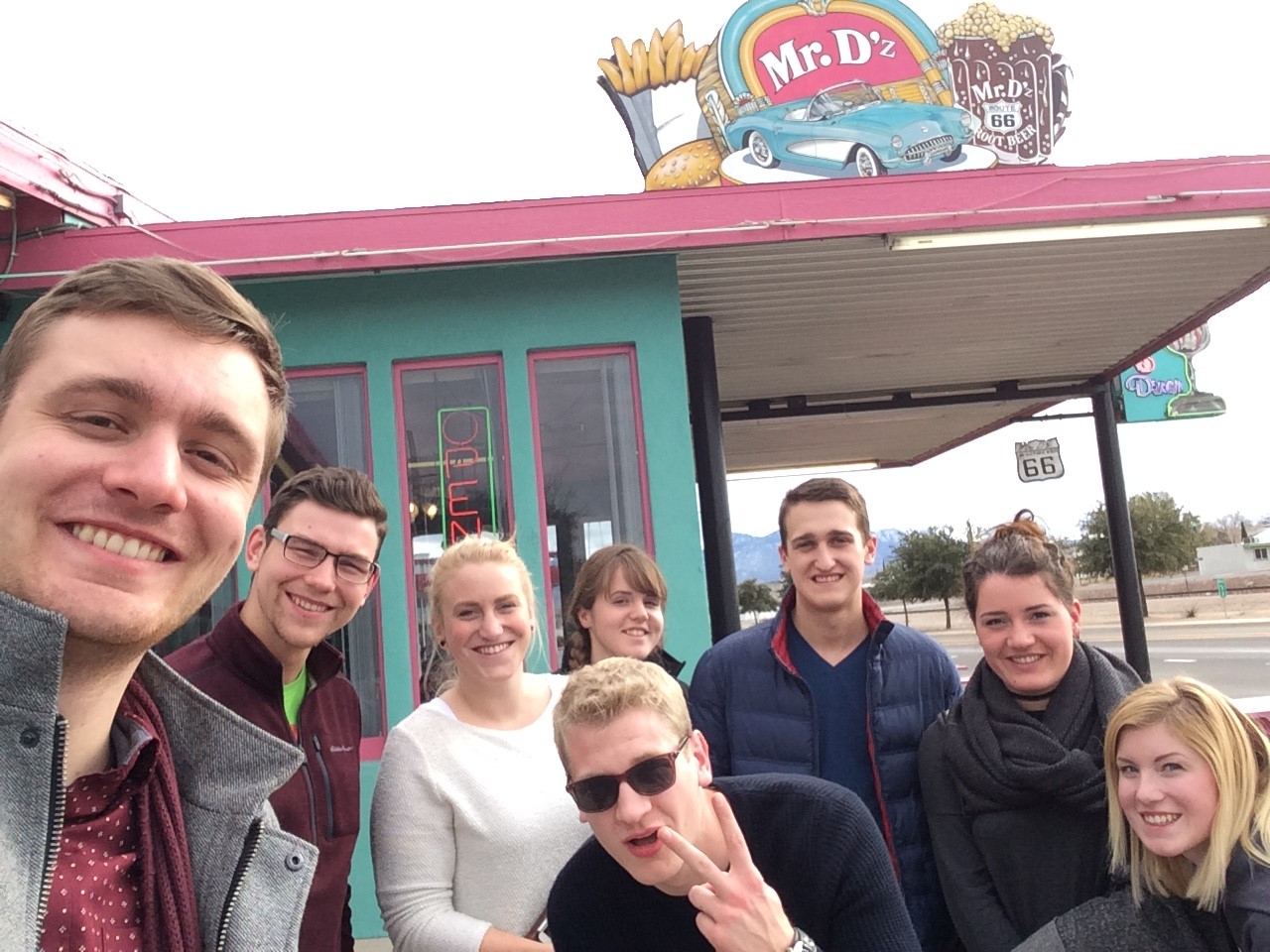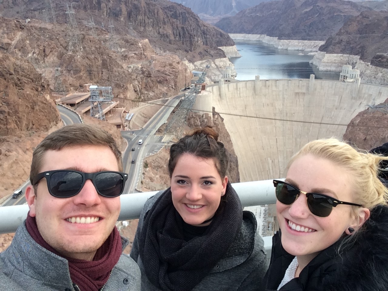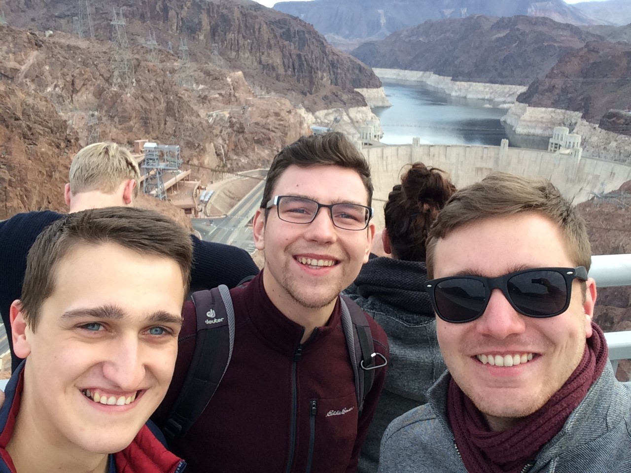 Am 27.12.2016 ging unser Flug. Die ersten Nacht verbrachten wir mit einer kleinen Gruppe von 8 Leuten im „Treasure Island Casino und Hotel“ direkt am berühmten Las Vegas Boulevard, auch „Strip“ genannt. Am 28.12.2016 ging es dann in das gemietete Haus und der Rest der Truppe trudelte langsam ein bis alle 11 Schlafzimmer voll belegt waren. Mit den ersten Kästen guter Laune begann das Abenteuer, das sich für die nächsten 4 Tage hinziehen sollte. Wir fuhren zum Strip und verspielten ein bisschen Geld in den Casinos oder guckten uns die Sehenswürdigkeiten an. Abends ging es dann entweder in einen der unzähligen Clubs oder es wurde einfach im Haus Party gemacht. Am 30.12. machten wir eine Tagesausflug zum Hoover Dam und zum Grand Canyon, der ca. 4 Autostunden von Las Vegas entfernt ist (für amerikanische Verhältnisse ist das ein Katzensprung). Auf dem Weg machten wir einen Stop an der historischen Route 66, um in einem klassischen Diner etwas zu essen. Auch wenn auf dem Trip alle noch ein bisschen vom Vorabend angeschlagen waren, hat der Ausblick am South Rim des Grand Canyon alles wieder gut gemacht.